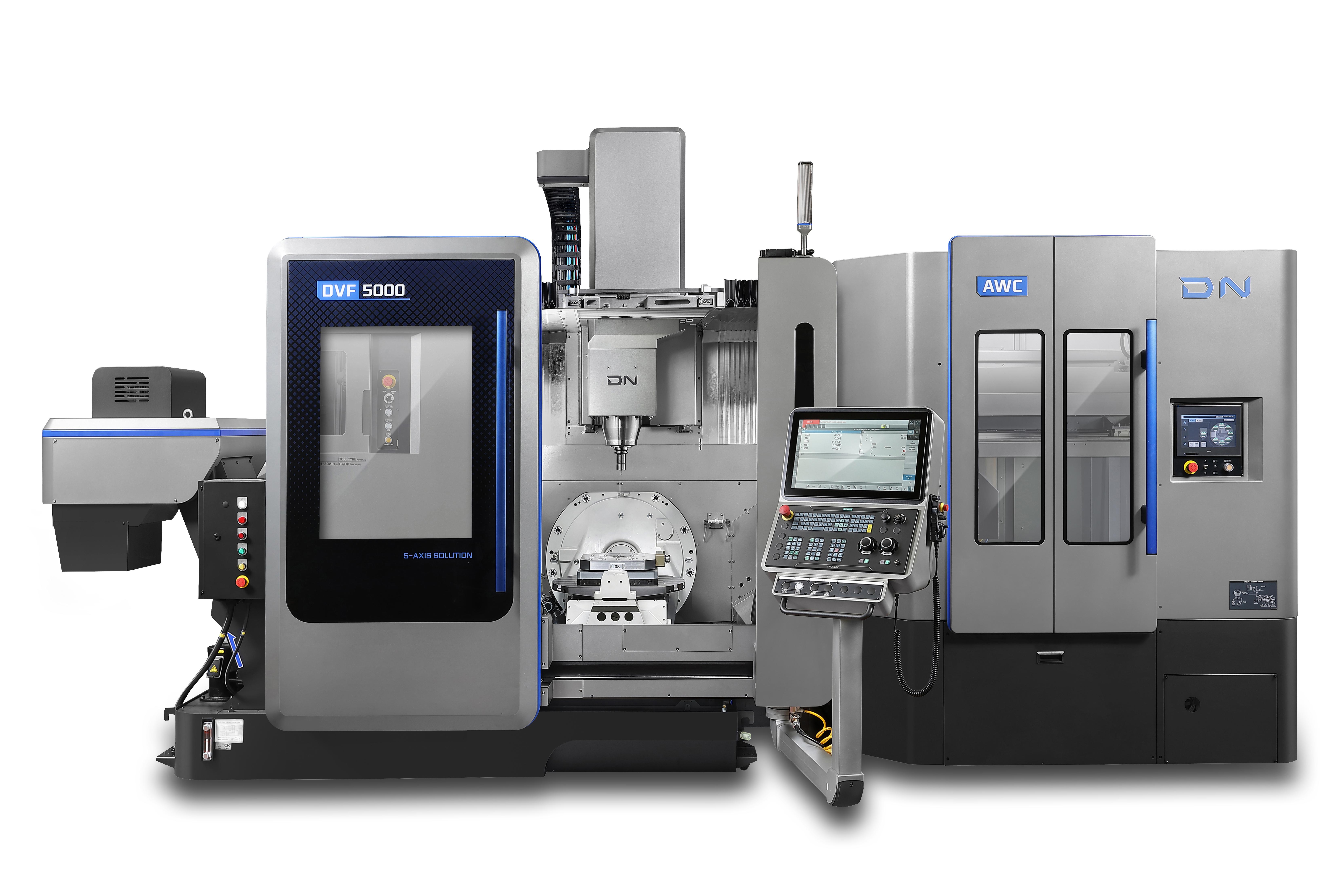 The DVF Series includes premium 5-axis vertical machining centers, such as the DVF 4000, DVF 5000, DVF 6500, and DVF 8000, all designed for high-precision machining of complex parts. These models offer enhanced reliability and productivity, featuring eco-friendly grease lubrication on the X/Y/Z axes. Their stable structure and compact footprint make them ideal for producing small to medium-sized workpieces with intricate shapes. Additionally, the DVF Series provides optional table turning functionality for complete machining in a single setup, catering to a wide range of manufacturing needs. |