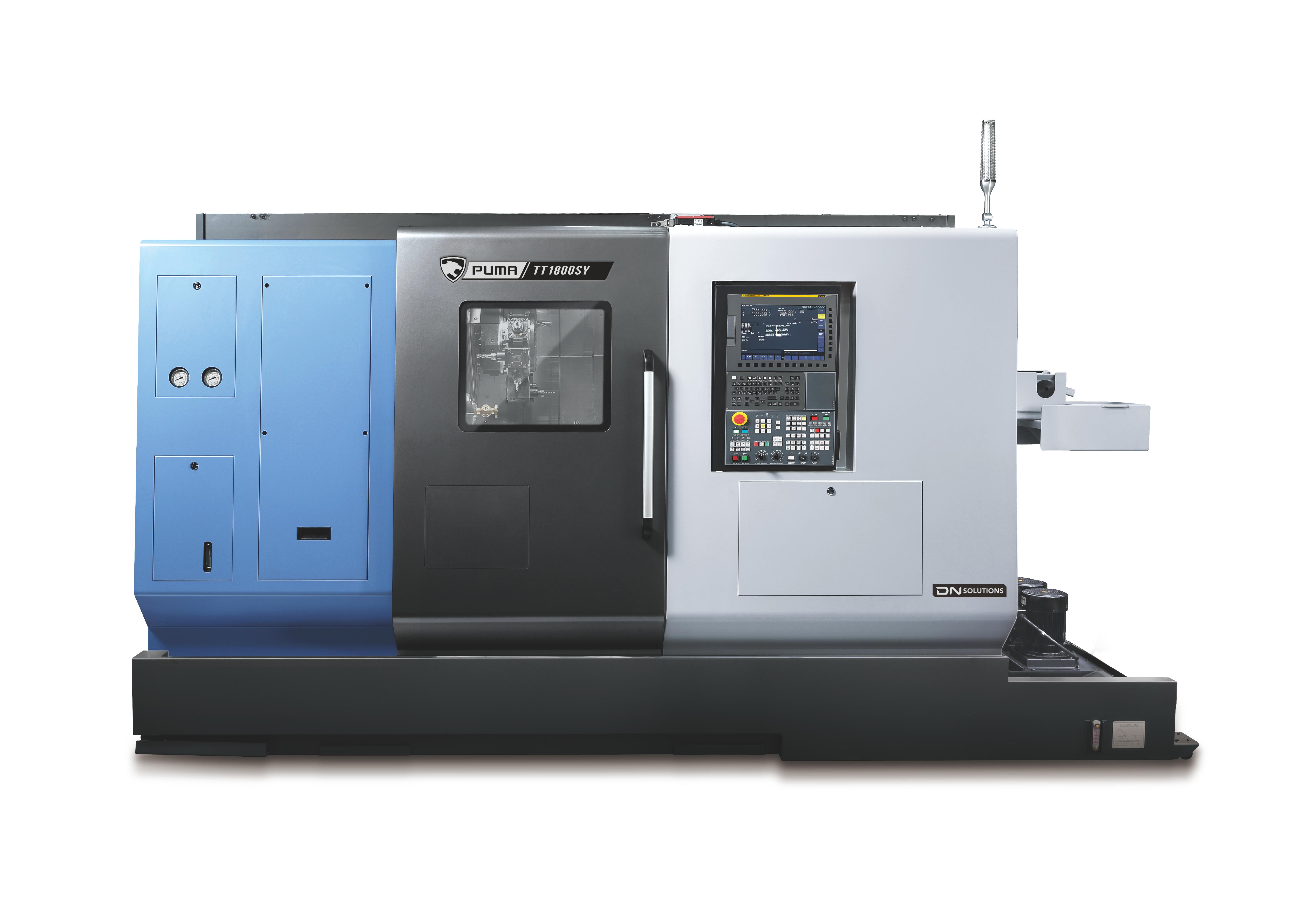 The PUMA TT1300, TT1800, TT2100, and TT2500 series are high-productivity horizontal turning centers with bar capacities ranging from 42mm to 81mm. These machines are equipped with twin opposed spindles and upper/lower turrets, featuring Y-axis capabilities for simultaneous two-face machining. Both spindles have equal power and capacity, allowing independent operation and automatic workpiece ejection, significantly enhancing productivity. Favored globally, the PUMA TT series is renowned for its best-in-class performance and reliability, making it one of DN Solutions' top-selling products. |