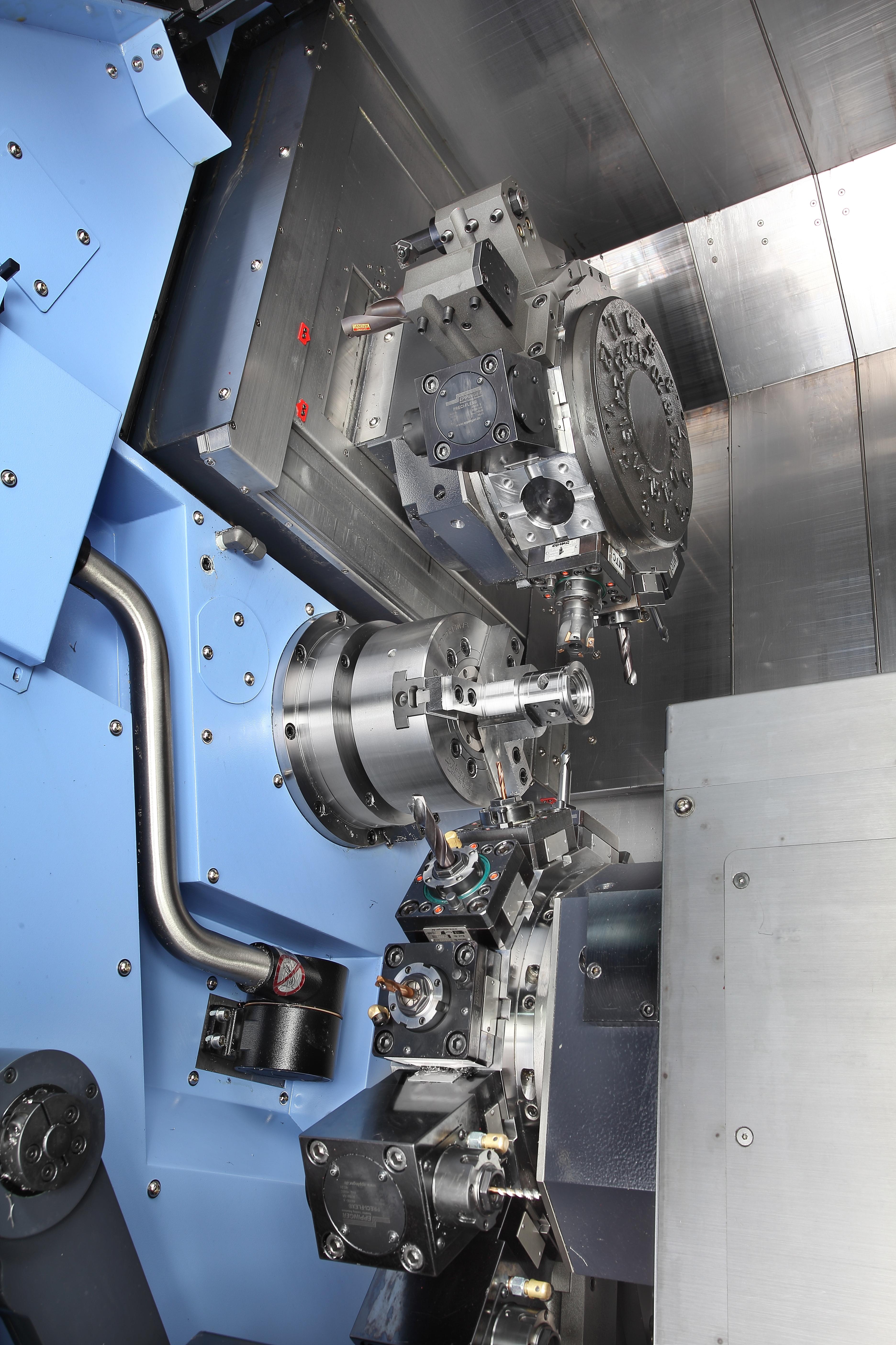 - Dual Spindle Efficiency: Twin opposed spindles with equal power allow simultaneous machining on two faces, significantly increasing productivity.