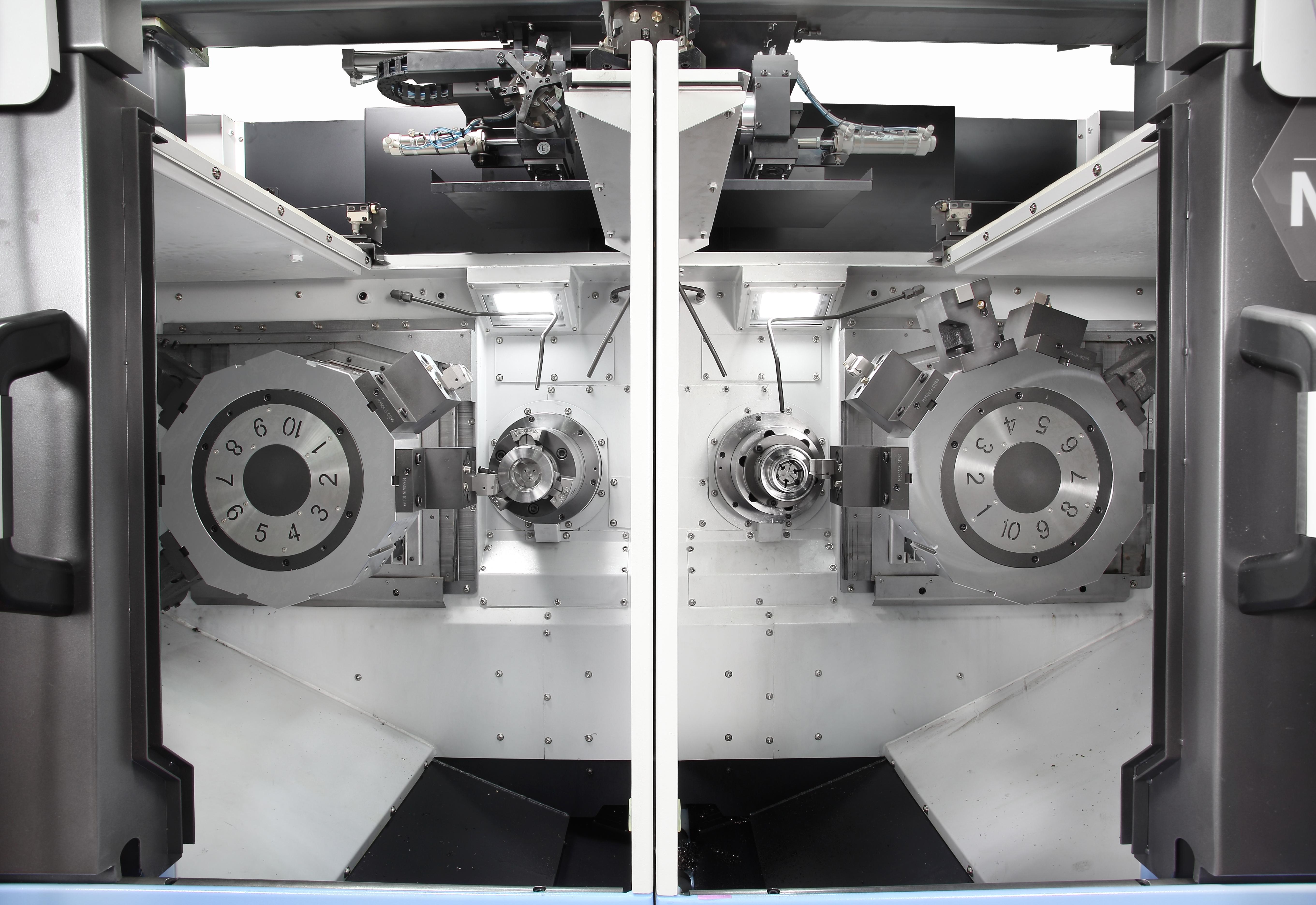 - High Productivity: The twin-spindle design enables simultaneous machining, significantly boosting production efficiency.